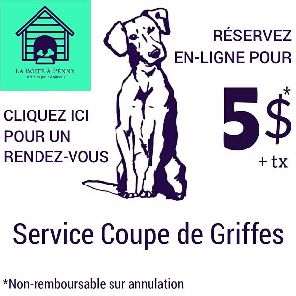 Chez La Boite à Penny, nous offrons bien plus que juste un services de base: Émilie, notre conseillère de soir et fin de semaines offre un service de taille de griffes avec amour, patience et douceur.
