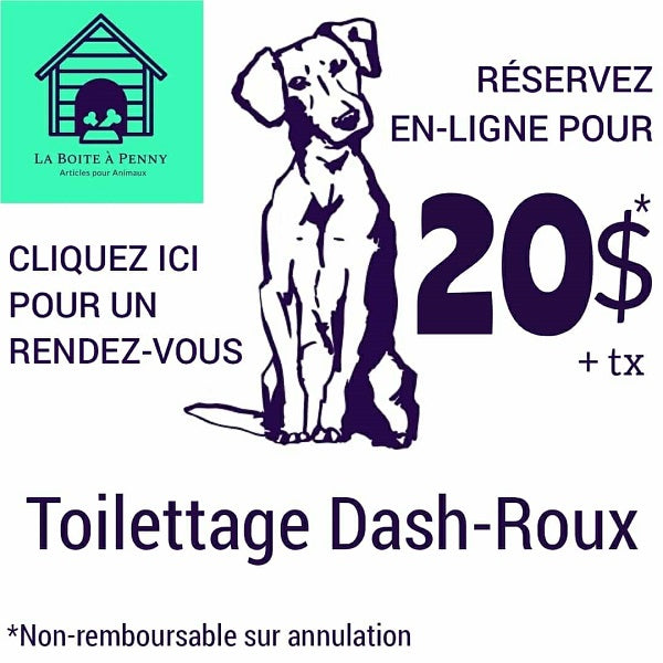 Chez La Boite à Penny, nous offrons le service de toilettage professionnel, fait de mains de maître. Notre toiletteuse professionnelle Prisca a tous les trucs pour redonner un look de vedette à vos chiens avec un toilettage et un coup de ciseaux magique. C'est avec Prisca qu'on retrouve le service de toilettage complet avec tonte.